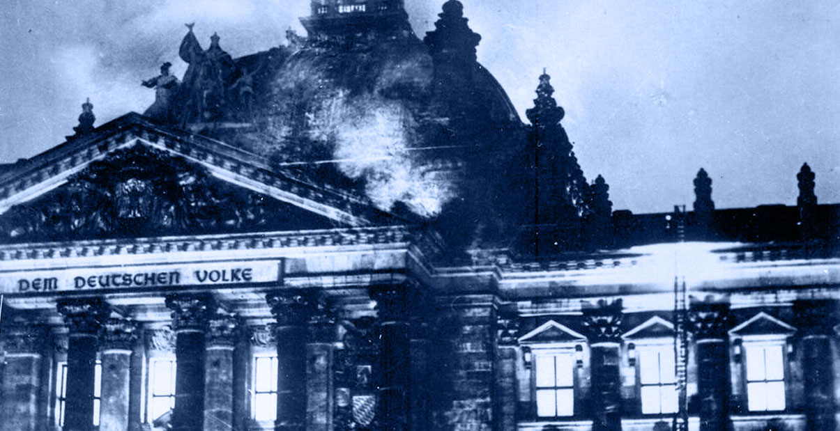 The day after the German parliament (Reichstag) building burned down due to arson, President Hindenburg issues the Decree for the Protection of People and the Reich.